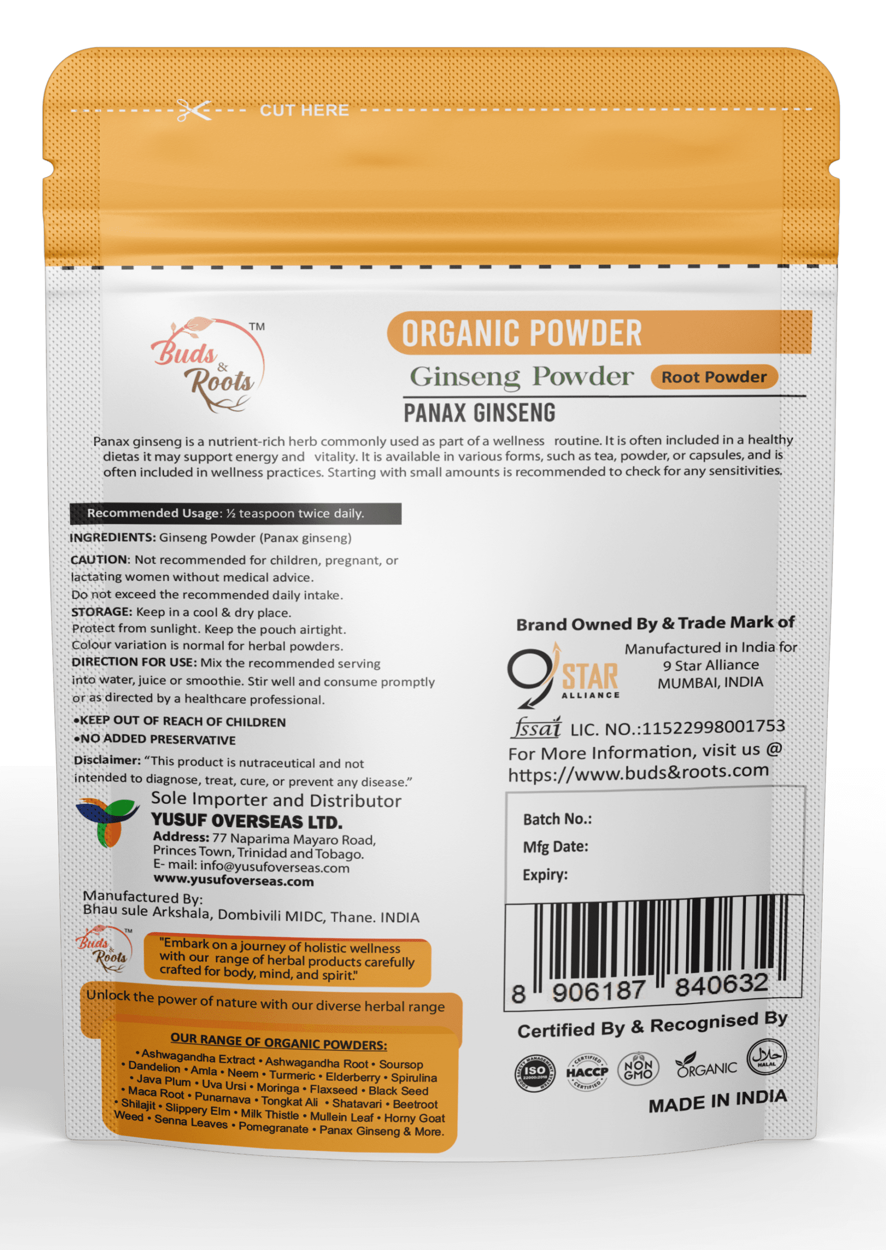 Buds & Roots Ginseng Organic Powder