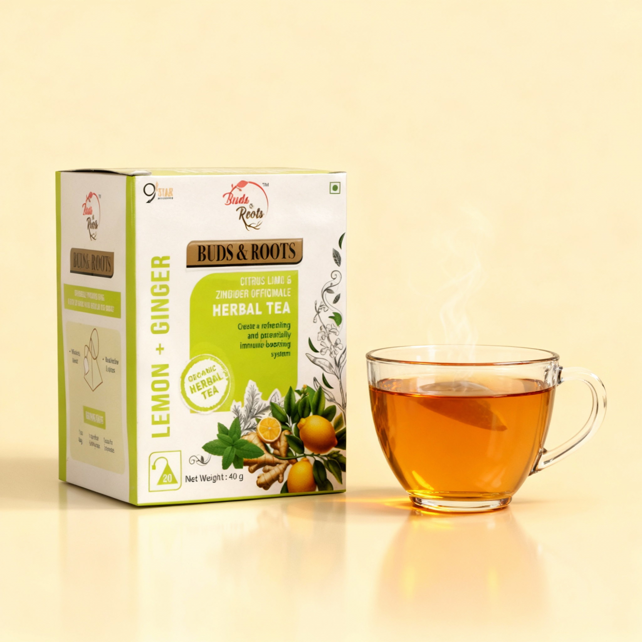 Buds & Roots Lemon + Ginger Herbal Tea is a zesty and invigorating blend that combines the refreshing taste of lemon with the warmth and spice of ginger. This powerful duo is well-known for its health benefits, including boosting the immune system, aiding digestion, and promoting detoxification. Perfect for starting your day or giving you an afternoon energy boost, this tea helps revitalize your body while soothing your mind.