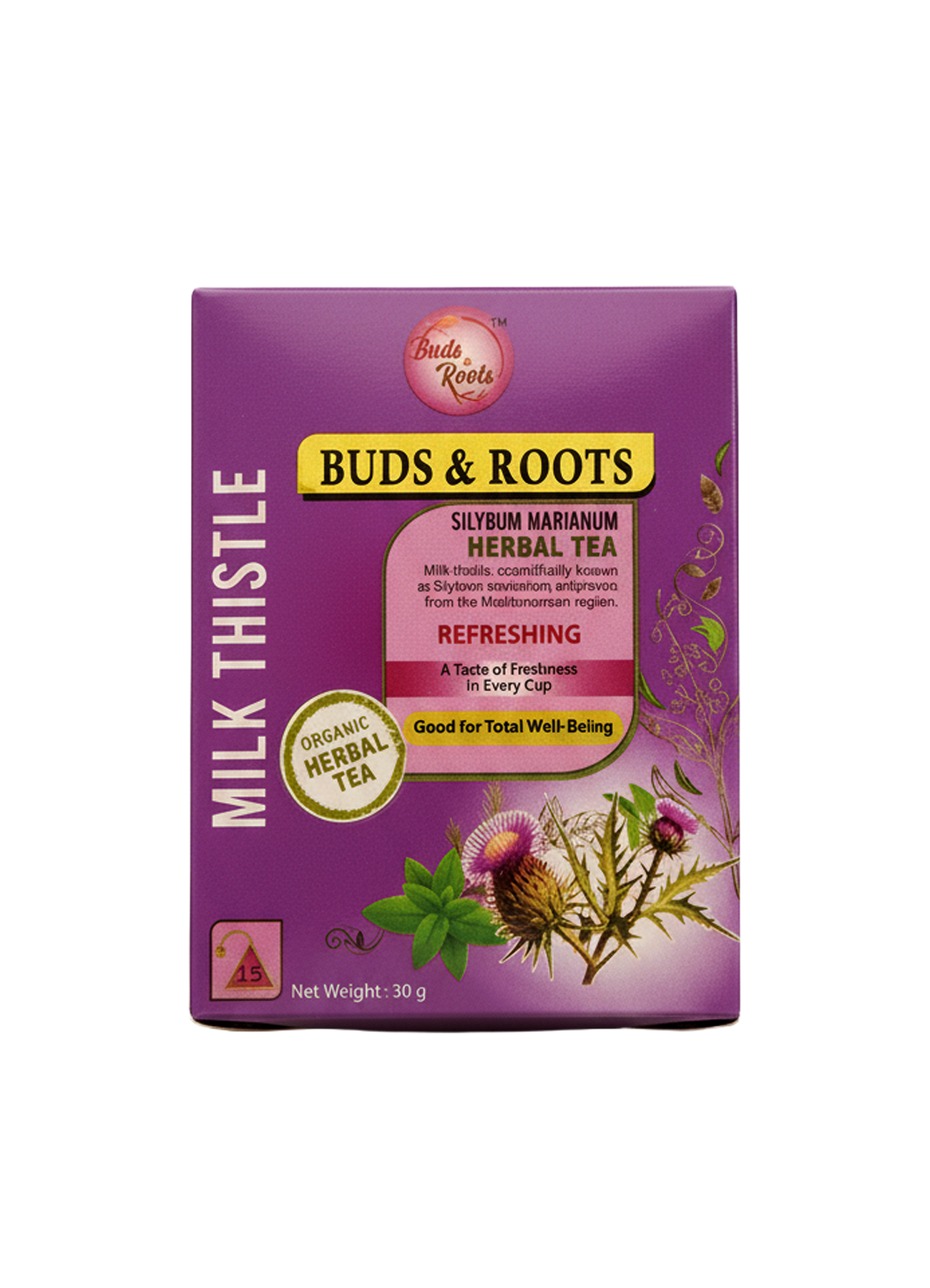 Buds & Roots Milk Thistle Herbal Tea is a nourishing herbal infusion made from premium Milk Thistle, a botanical widely recognized for its liver-supporting properties. Traditionally used in herbal wellness practices, Milk Thistle contains natural compounds that help support the body’s detoxification process and maintain digestive health. This soothing, caffeine-free herbal tea offers a gentle way to incorporate the benefits of this time-honored herb into your daily wellness routine.