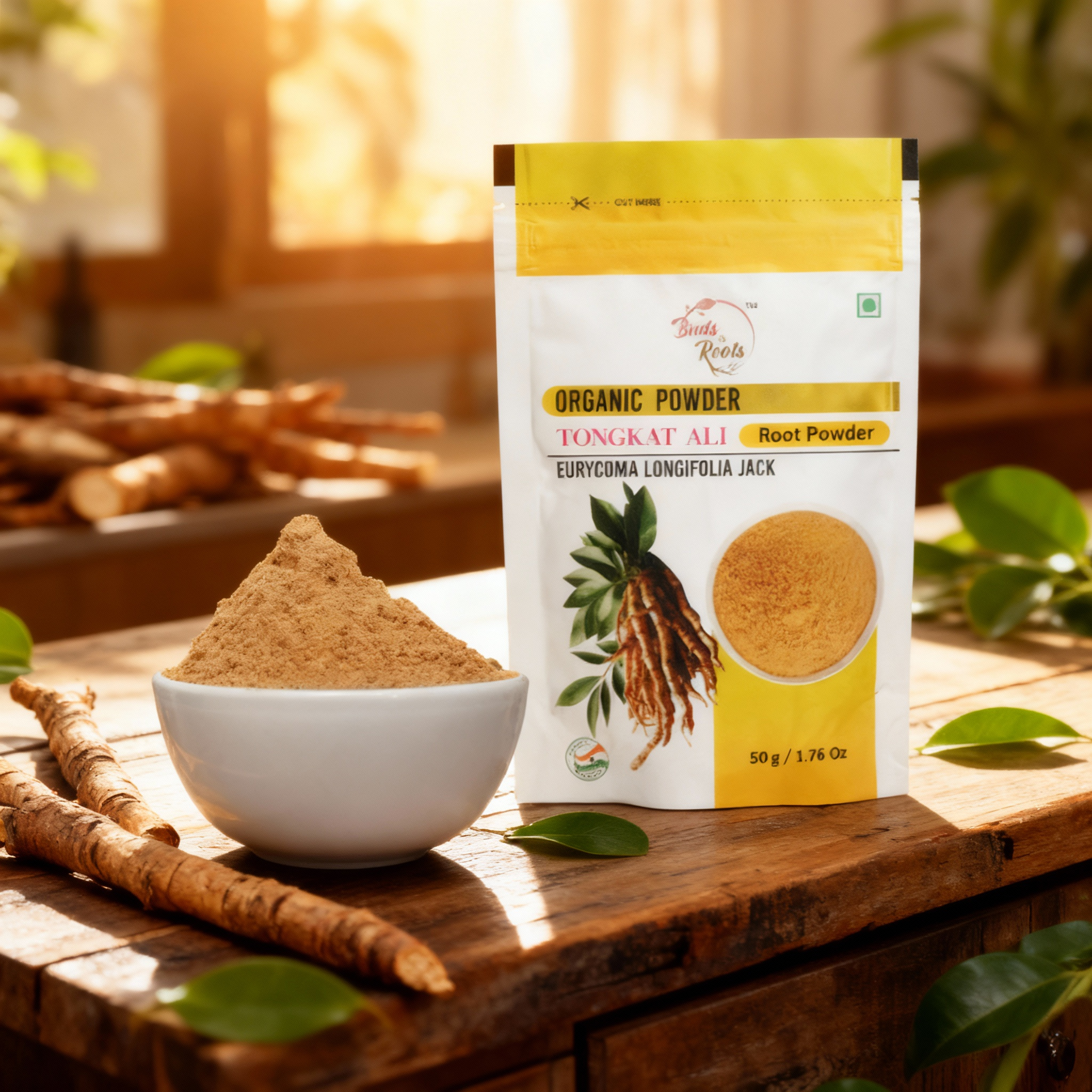 100% Pure Tongkat Ali Root Powder: Made from the highest quality, sustainably sourced Tongkat Ali roots for maximum potency.