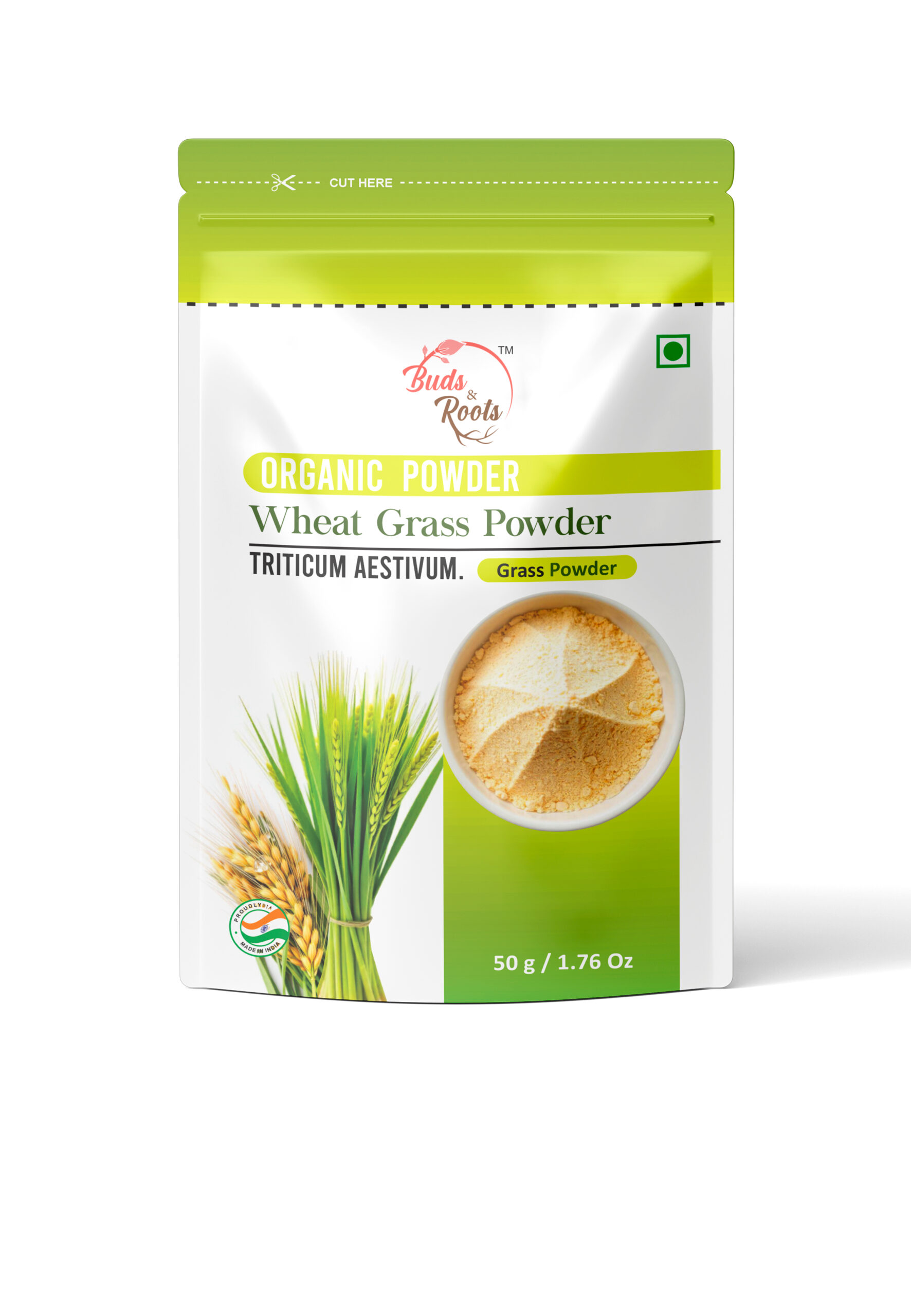 Buds & Roots Wheatgrass Powder is made from premium-quality young wheatgrass leaves (Triticum aestivum), carefully dried and finely ground to preserve their natural nutrients. Known as a green superfood, wheatgrass is naturally rich in chlorophyll, vitamins, minerals, antioxidants, and plant-based compounds that support overall vitality and nutritional balance. With its fresh green color and mild grassy flavor, this versatile powder can be easily added to beverages and recipes to enhance everyday wellness routines.