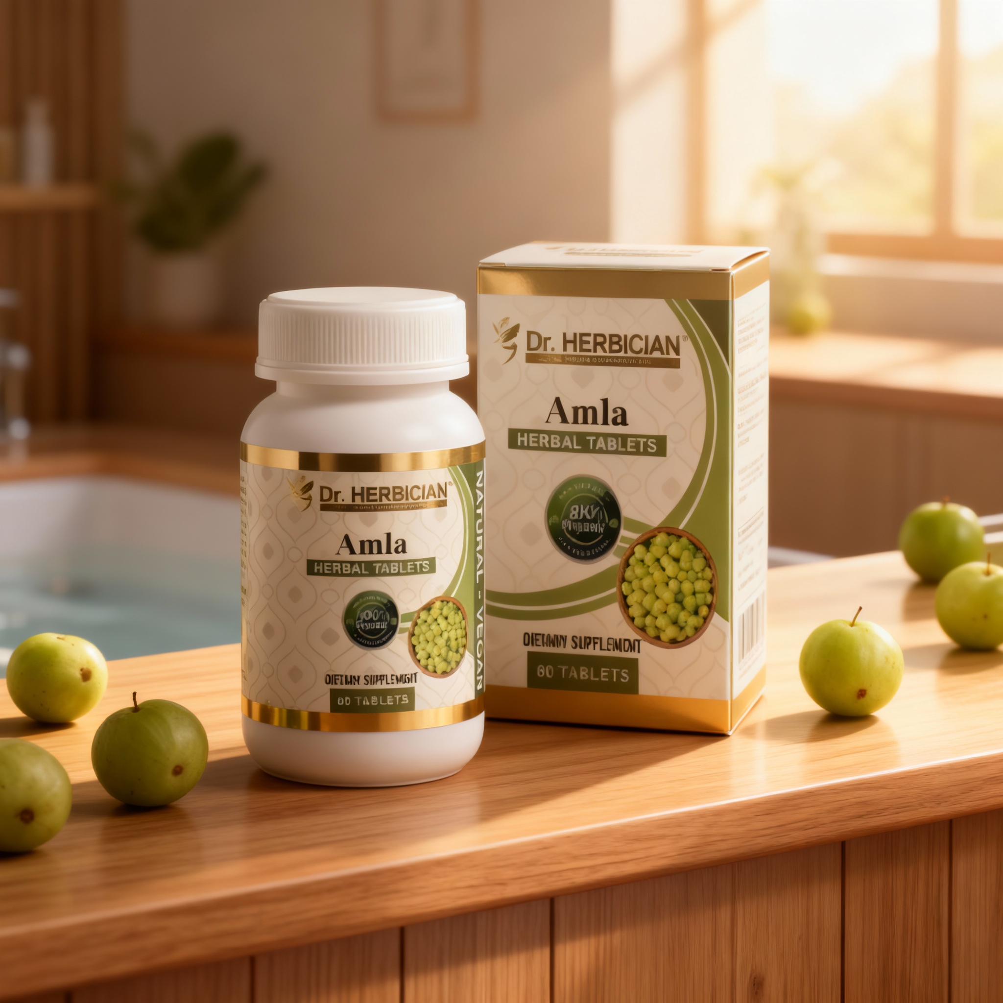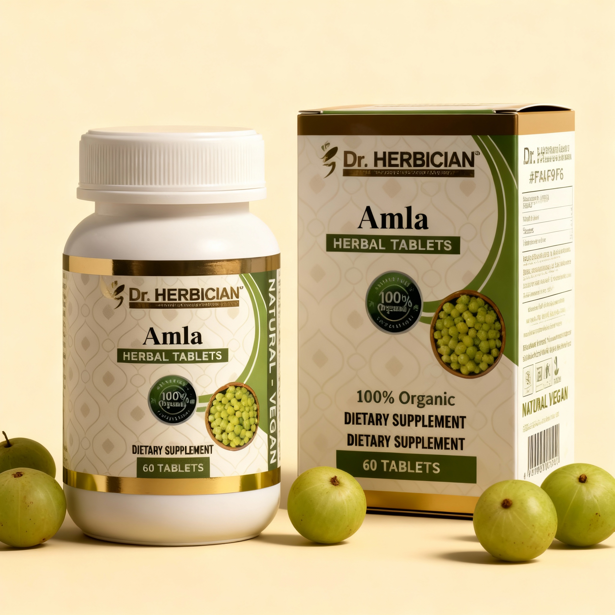 Dr. Herbician Amla Herbal Tablets are a natural powerhouse of Vitamin C and antioxidants, designed to support your overall health and vitality. Made from premium-quality Amla (Indian Gooseberry) extracts, these tablets enhance immunity, promote radiant skin, and improve digestive health. Amla is renowned for its adaptogenic properties, which help the body manage stress while boosting energy and vitality. These tablets are perfect for those seeking to incorporate a simple yet highly effective herbal supplement into their daily routine to promote wellness from within.