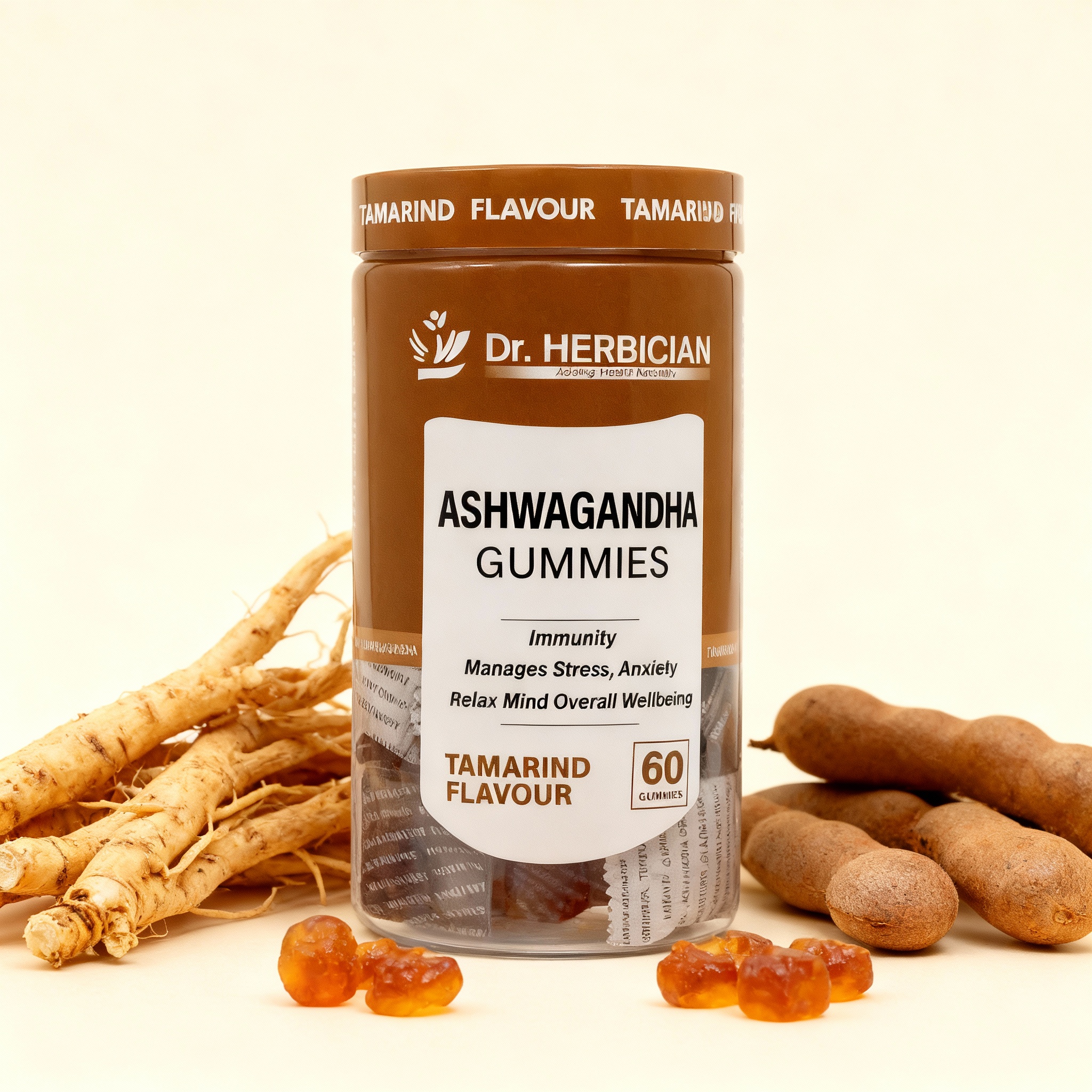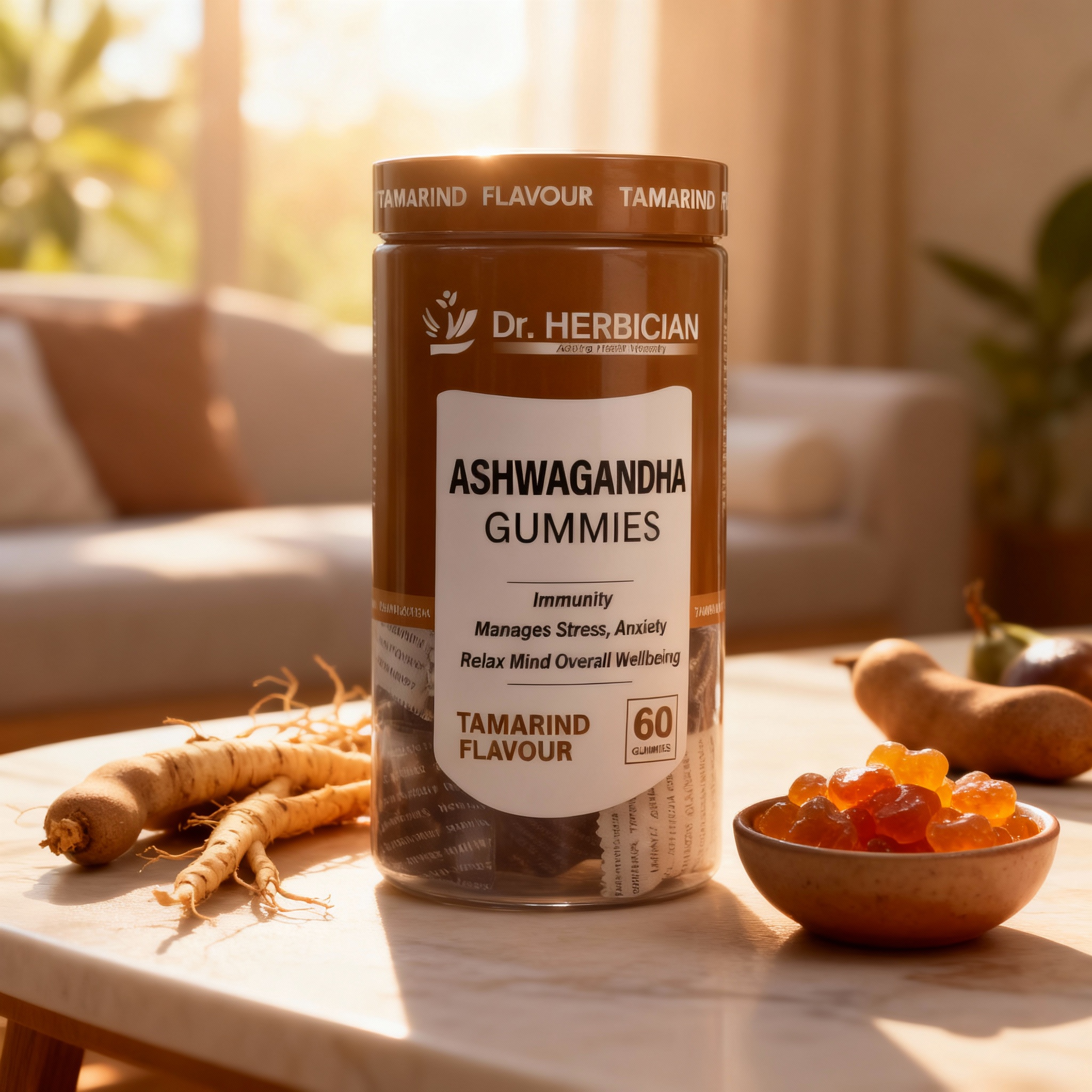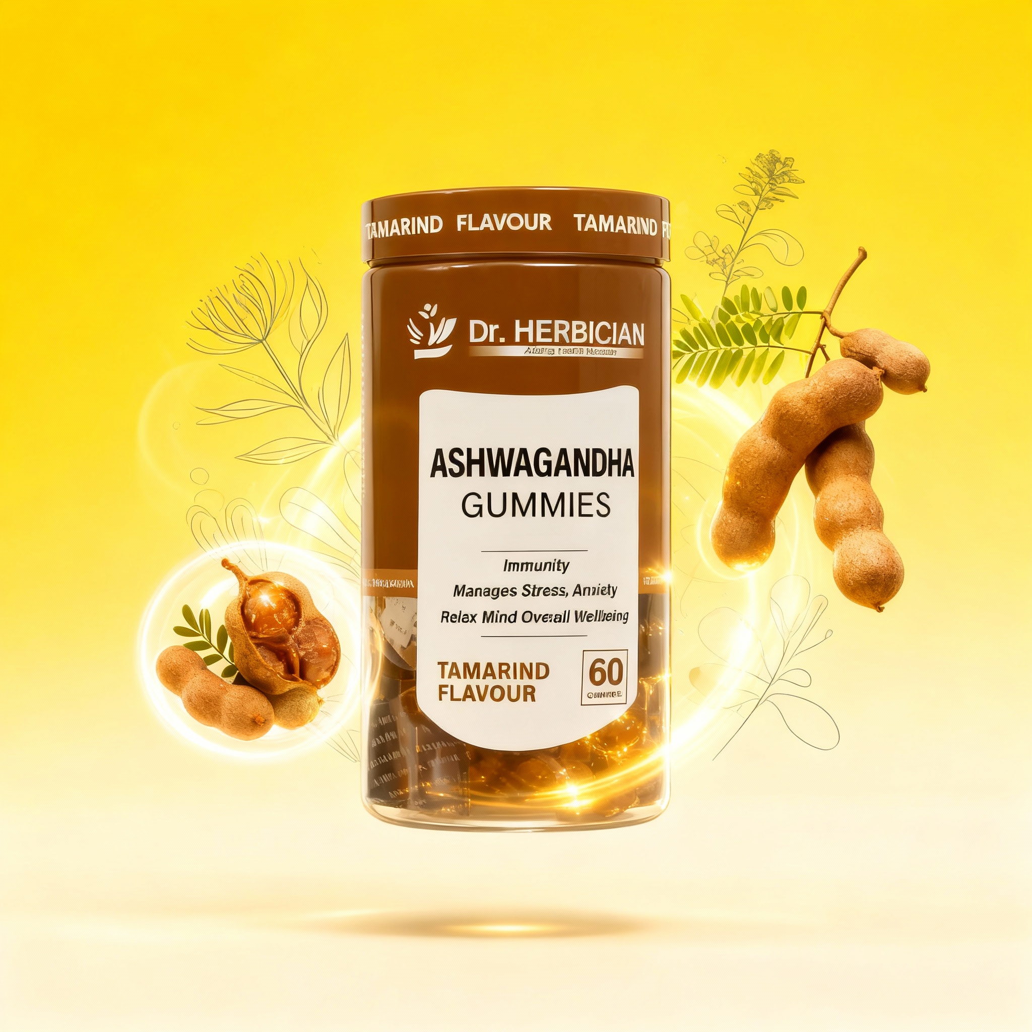 Dr. Herbician Ashwagandha Gummies in Tamarind flavor offer a delicious way to experience the calming and rejuvenating benefits of ashwagandha, a renowned adaptogen that helps reduce stress and promote relaxation. Known for its ability to support mental clarity and physical resilience, ashwagandha is ideal for daily use by those seeking natural stress relief and emotional balance. These tamarind-flavored gummies are both tasty and convenient, making it easy to incorporate the power of ashwagandha into your routine for balanced well-being and relaxation.