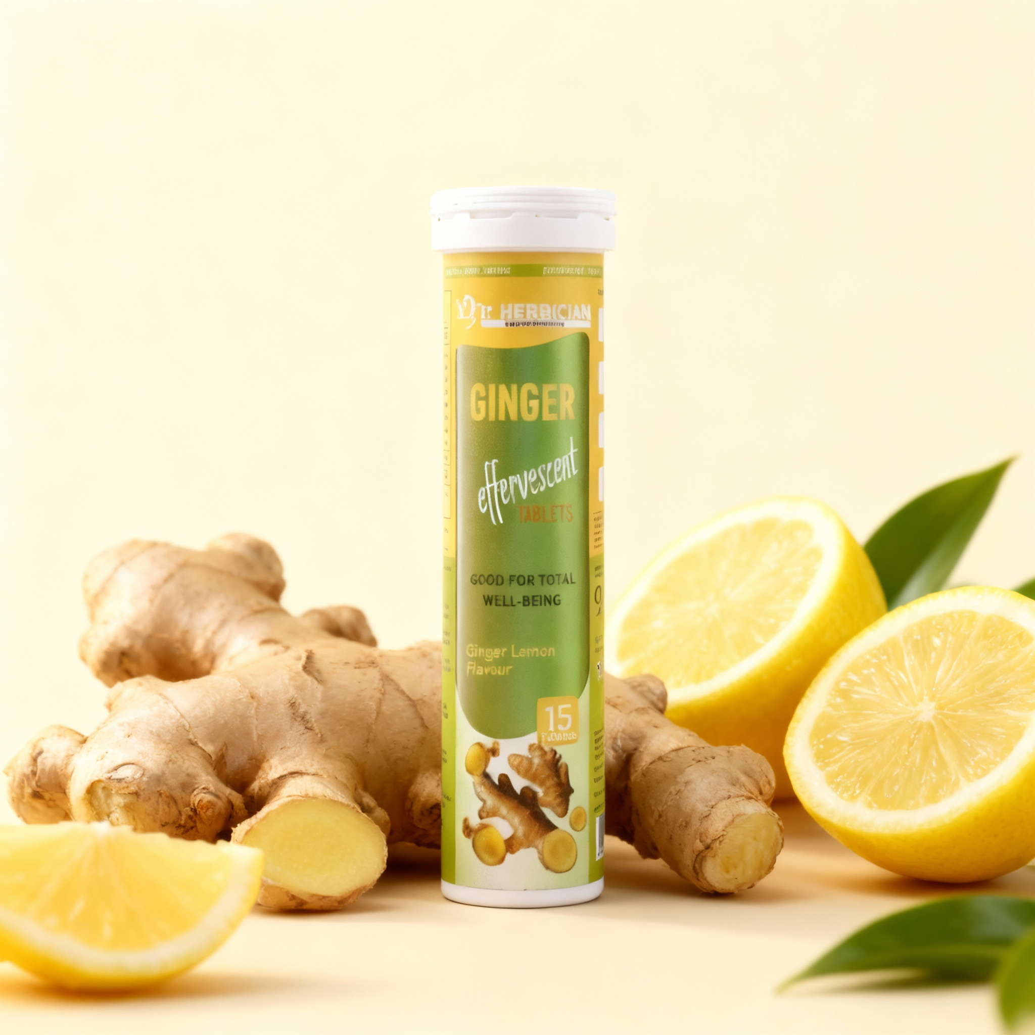 Effervescent Ginger with Lemon Flavor: Combines the digestive benefits of ginger with the refreshing taste of lemon.