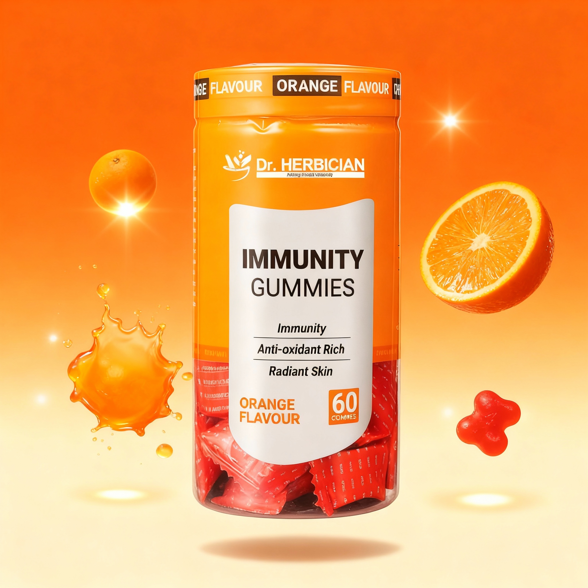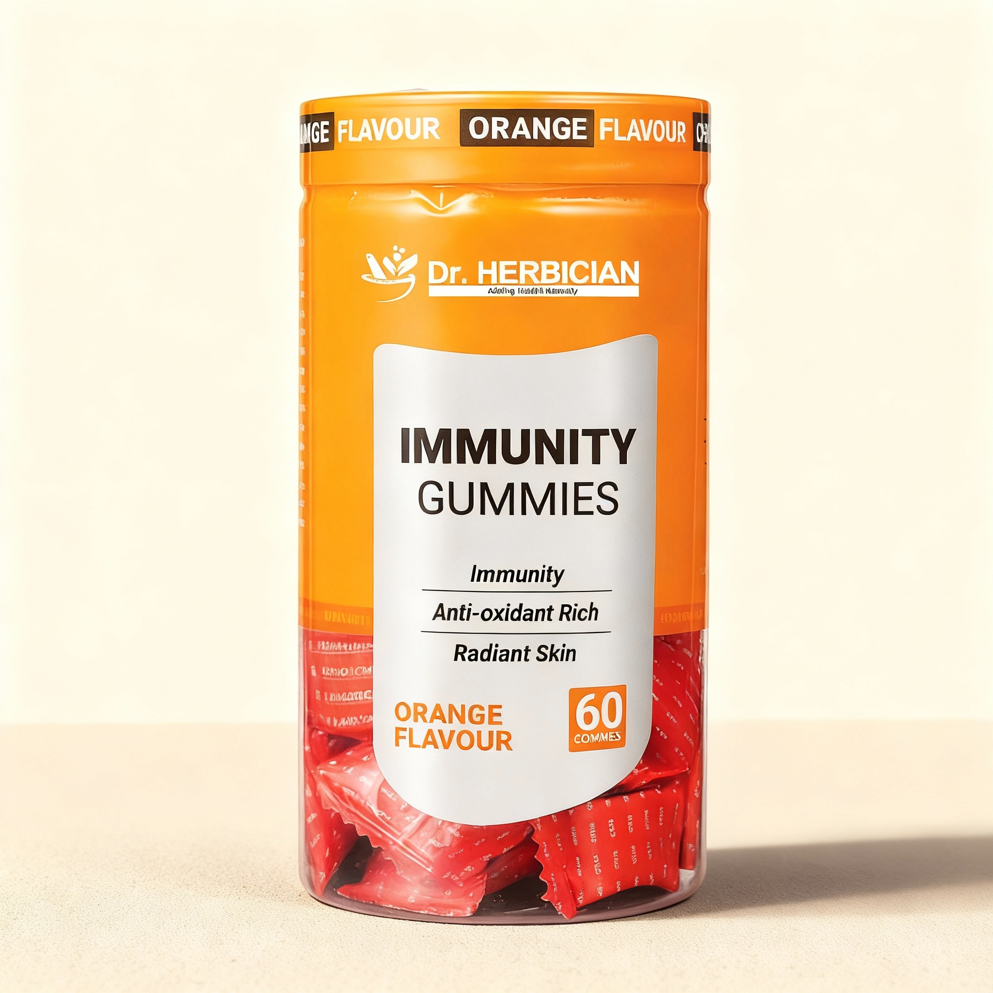 Dr. Herbician Immunity Gummies in Orange flavor are packed with essential vitamins and antioxidants to help support immune health and overall wellness. Each gummy contains a blend of vitamin C, zinc, and natural antioxidants, providing a tasty and convenient way to keep your immune system strong. Ideal for everyday health, these gummies help protect against seasonal illnesses and maintain vitality throughout the year. With a refreshing orange flavor, these immunity gummies are perfect for the whole family, making daily wellness an enjoyable part of your routine.