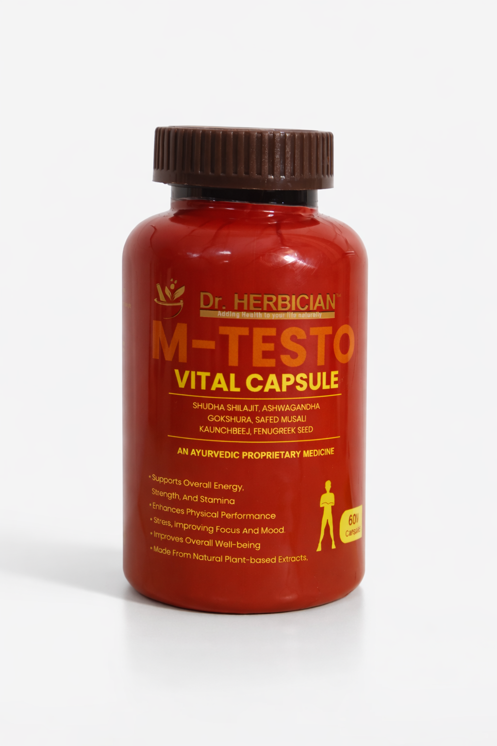 Dr. Herbician M – Testo Vital Capsule is a powerful herbal formulation designed to support natural testosterone levels, boost stamina, and enhance overall male vitality. Enriched with traditional Ayurvedic ingredients like Ashwagandha, Shilajit, Safed Musli, and Gokshura, it helps improve physical performance, energy levels, and reproductive health. This supplement is ideal for individuals seeking a natural way to maintain strength, endurance, and hormonal balance while supporting an active and healthy lifestyle.
