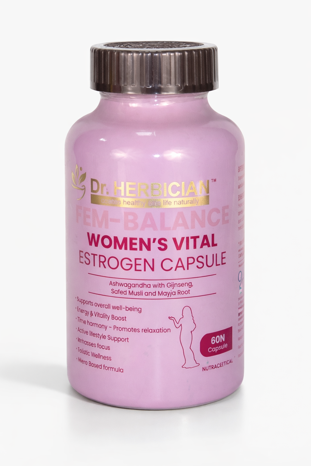 Dr. Herbician Woman’s Vital Estrogen Capsule is a carefully formulated herbal supplement designed to support natural estrogen balance and overall female wellness. Enriched with plant-based phytoestrogens, essential herbs, and nutrients, it helps regulate hormonal fluctuations, promote menstrual health, and support vitality during different life stages such as PMS, PCOS, and menopause. These capsules work by supporting healthy estrogen metabolism and maintaining hormonal harmony, which is essential for reproductive health, mood stability, and overall well-being.
