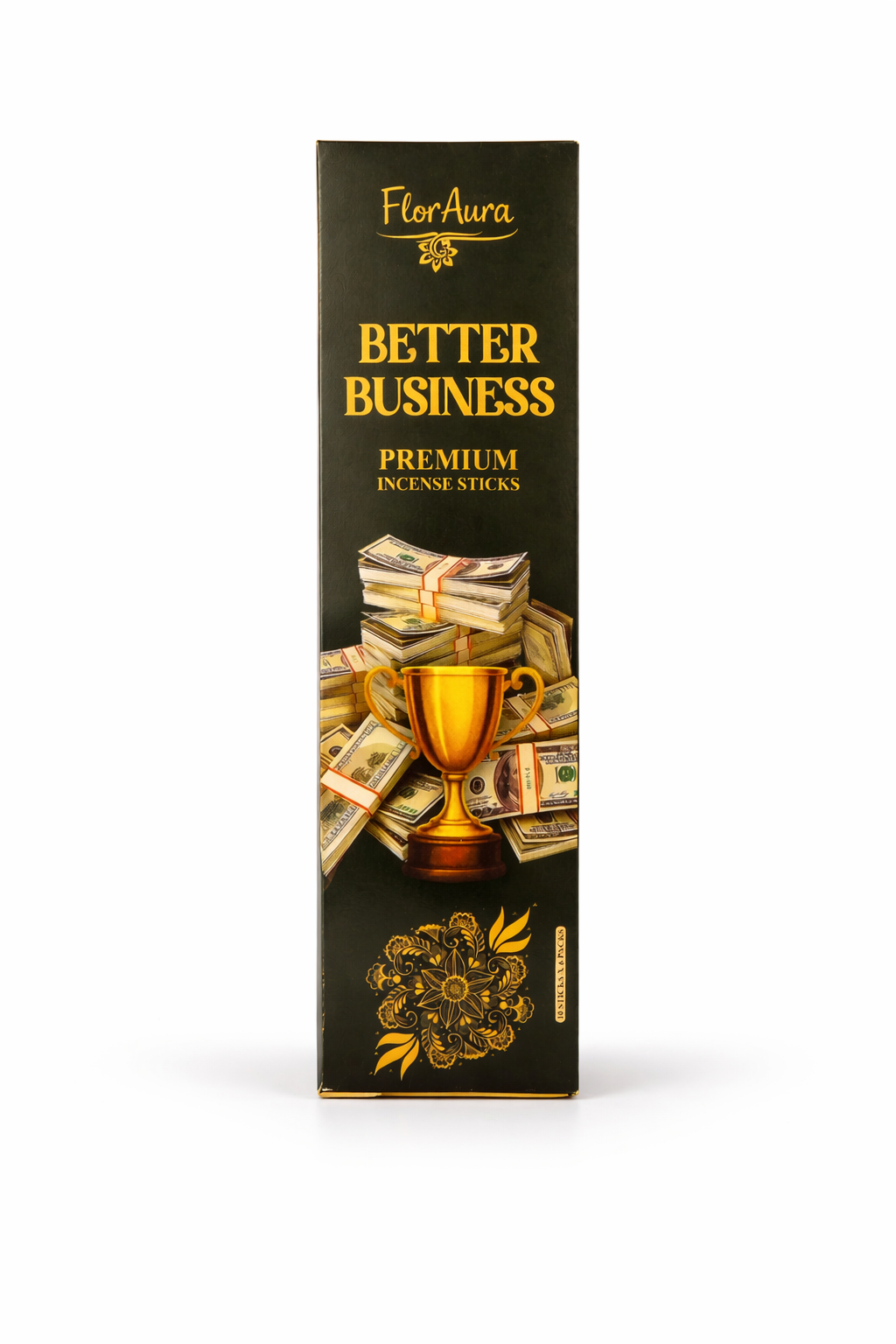 Flor Aura Better Business Premium Incense Sticks are thoughtfully crafted to create a focused, positive, and productive environment. With a refined and refreshing fragrance, these incense sticks help enhance concentration, uplift the mood, and bring a sense of clarity to your space. Ideal for offices, workspaces, and daily routines, they promote a balanced atmosphere that supports productivity and well-being while keeping your surroundings pleasantly fragrant.