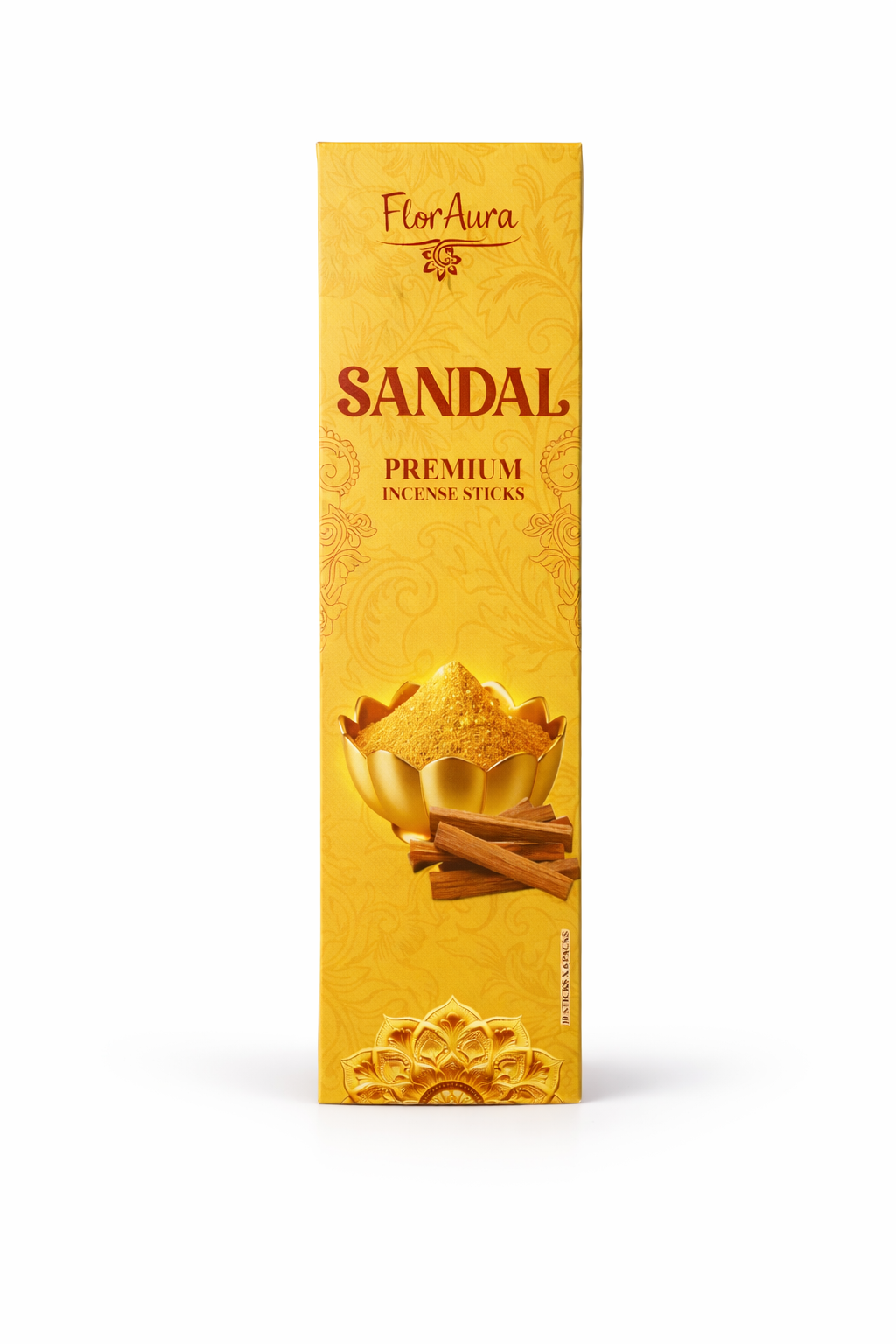 Flor Aura Sandal Premium Incense Sticks are crafted with the timeless, rich aroma of sandalwood to create a warm, calming, and spiritually uplifting atmosphere. The smooth and woody fragrance helps relax the mind, enhance focus, and bring a sense of inner peace. Ideal for meditation, पूजा, or everyday use, these incense sticks gently fill your space with a soothing scent that promotes harmony and positivity. Perfect for transforming your home, office, or sacred space into a serene sanctuary.