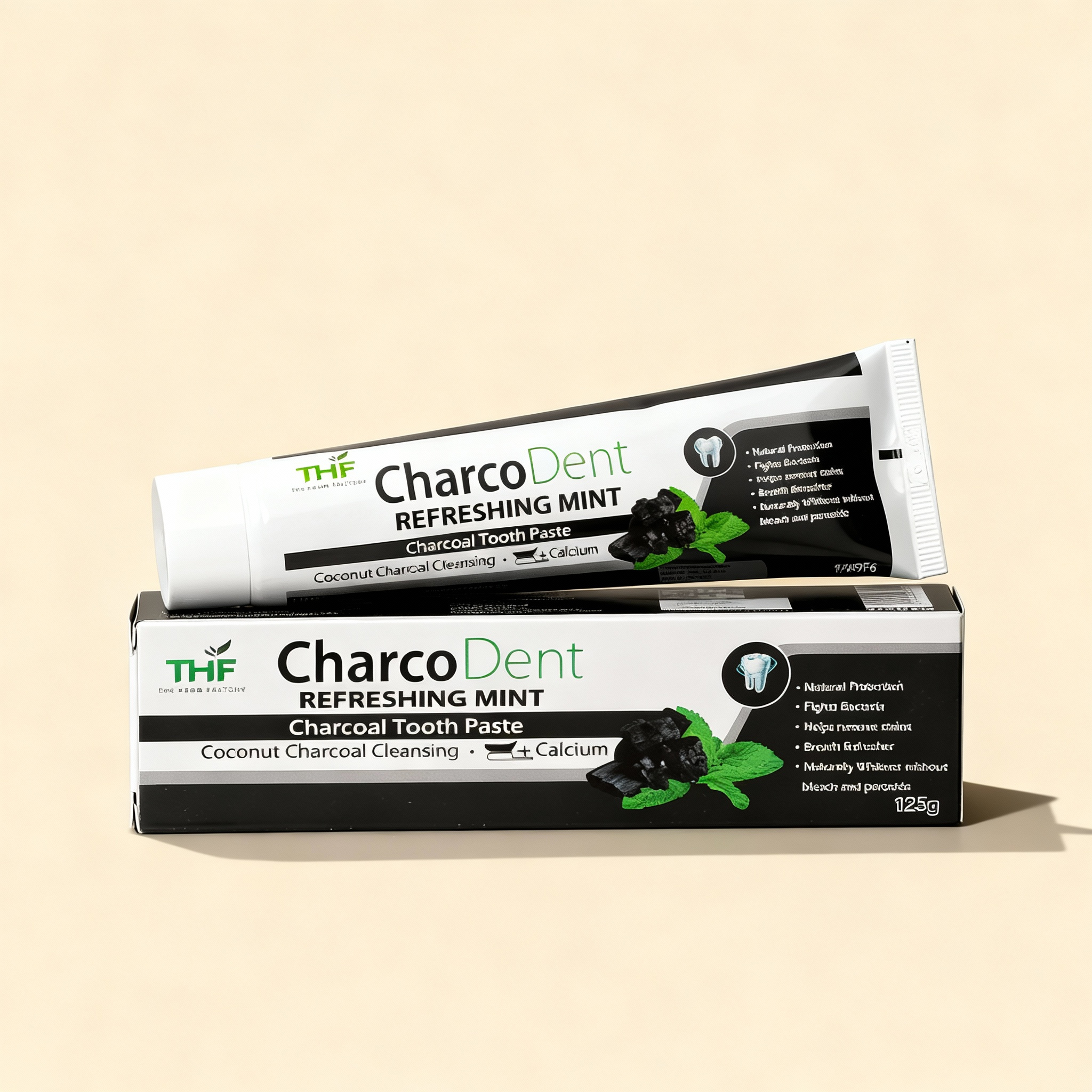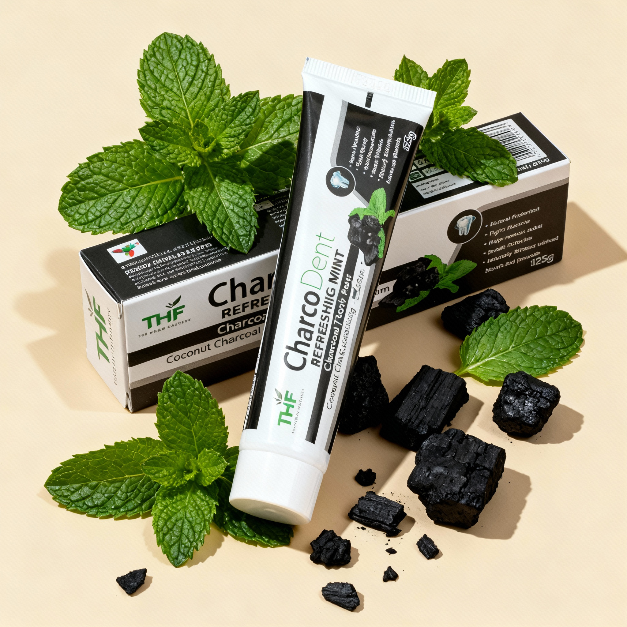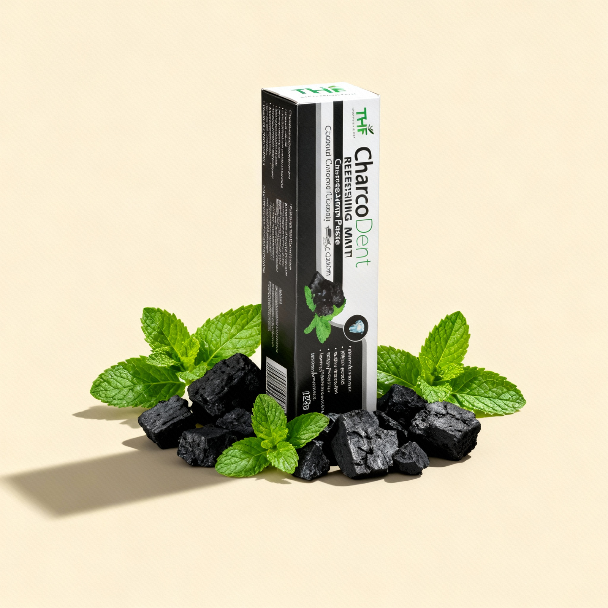 THF CharcoDent Refreshing Mint Charcoal Toothpaste combines the power of coconut charcoal and calcium to offer a superior oral care experience. This unique formula gently removes stains and toxins from your teeth while strengthening enamel with the natural benefits of calcium. The coconut charcoal works to whiten teeth and freshen breath, while the refreshing mint flavor leaves your mouth feeling clean and invigorated. Ideal for those looking for a deep clean, this toothpaste ensures a brighter smile and healthier gums with every use.